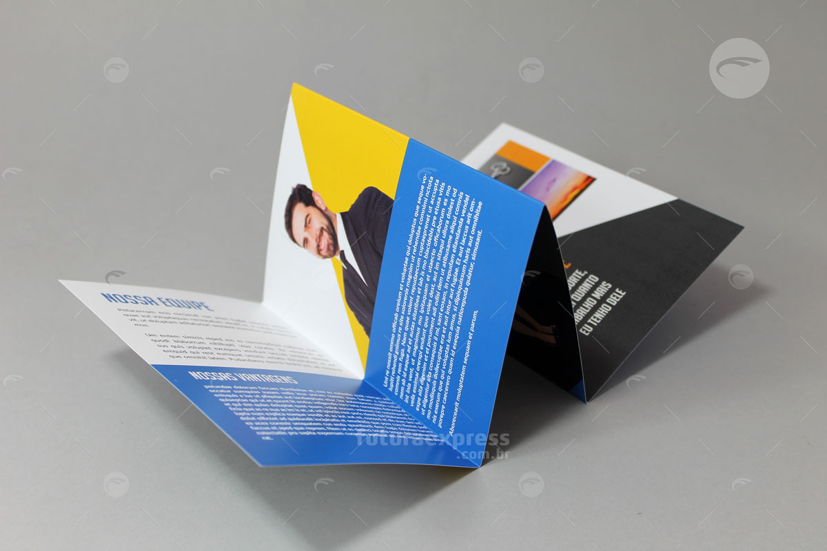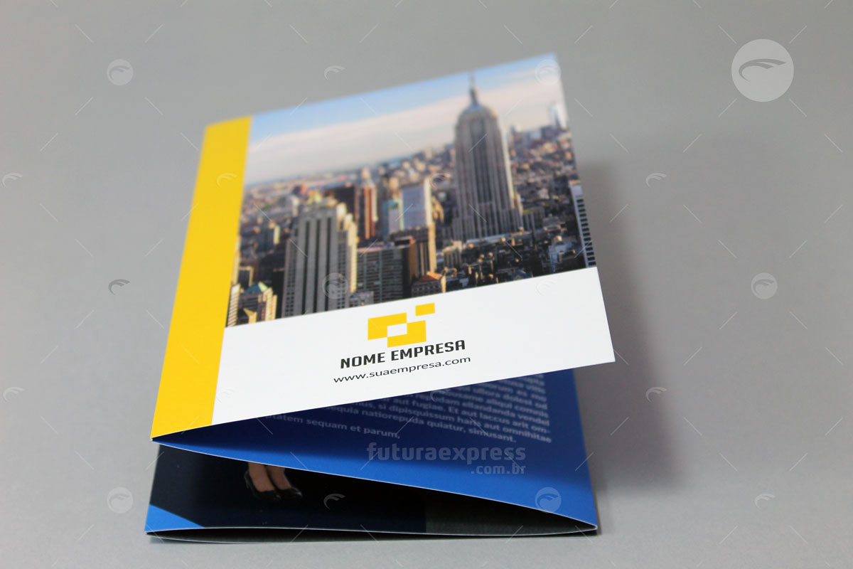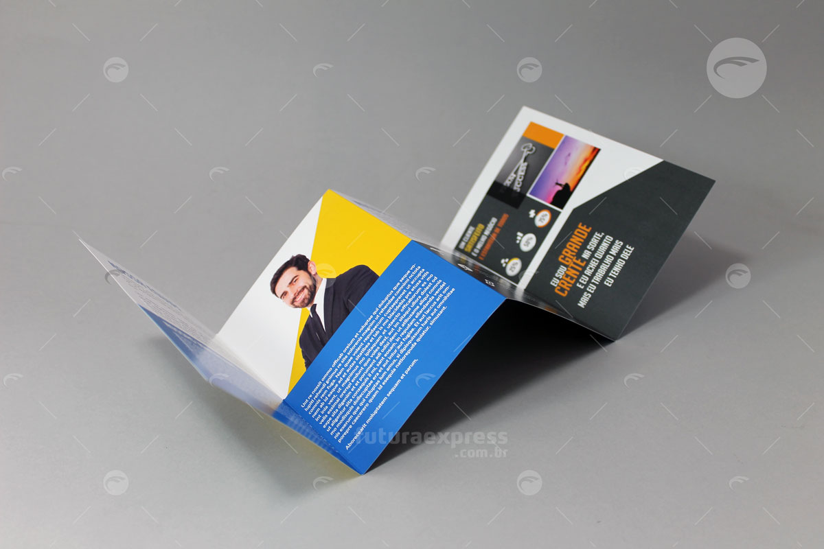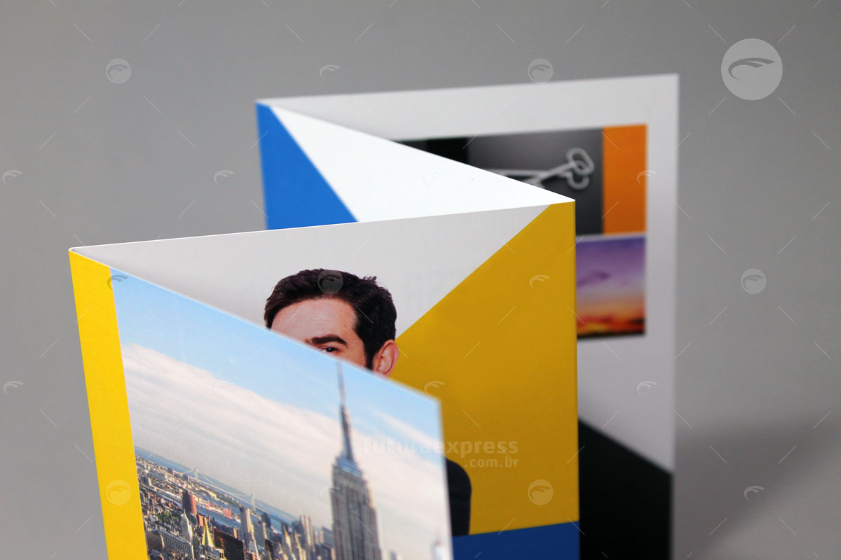 O Folder é um material publicitário impresso, que ao contrário do flyer, possui dobras e pode apresentar maior quantidade de informações. Uma boa qualidade de textos e imagens convence um público sobre determinada opinião. Tenha liberdade de escolher o melhor formato e acabamento para uma comunicação direcionada.