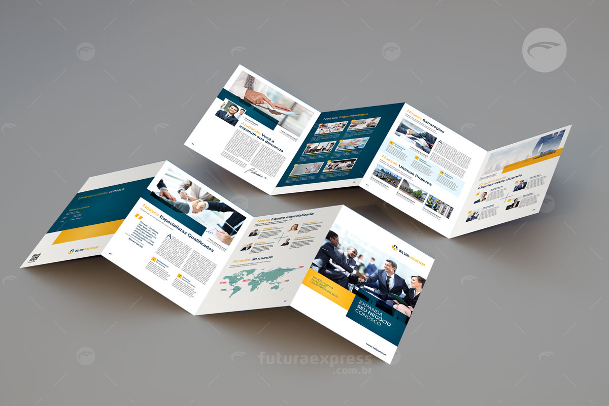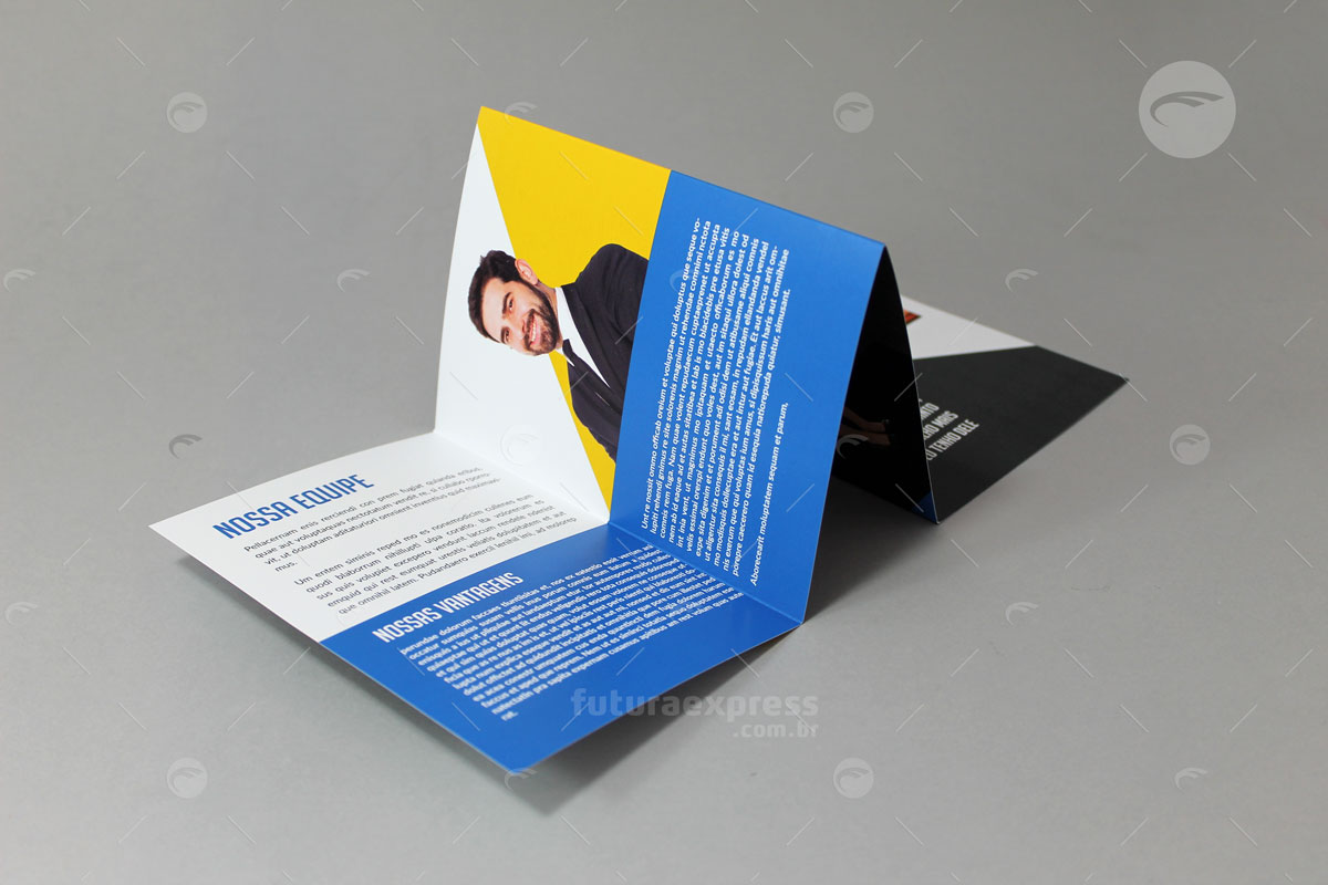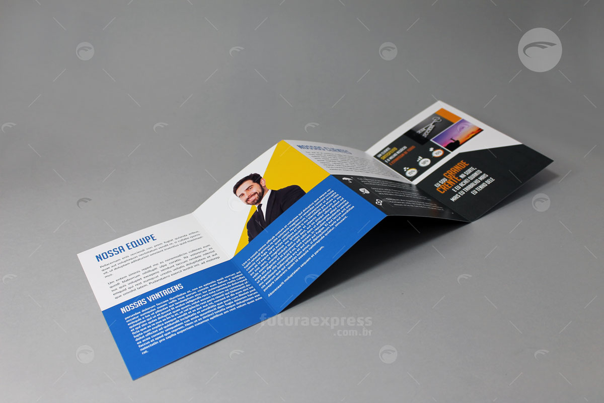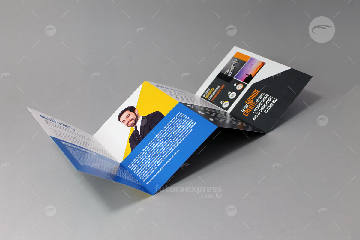O Folder é um material publicitário impresso, que ao contrário do flyer, possui dobras e pode apresentar maior quantidade de informações. Uma boa qualidade de textos e imagens convence um público sobre determinada opinião. Tenha liberdade de escolher o melhor formato e acabamento para uma comunicação direcionada.