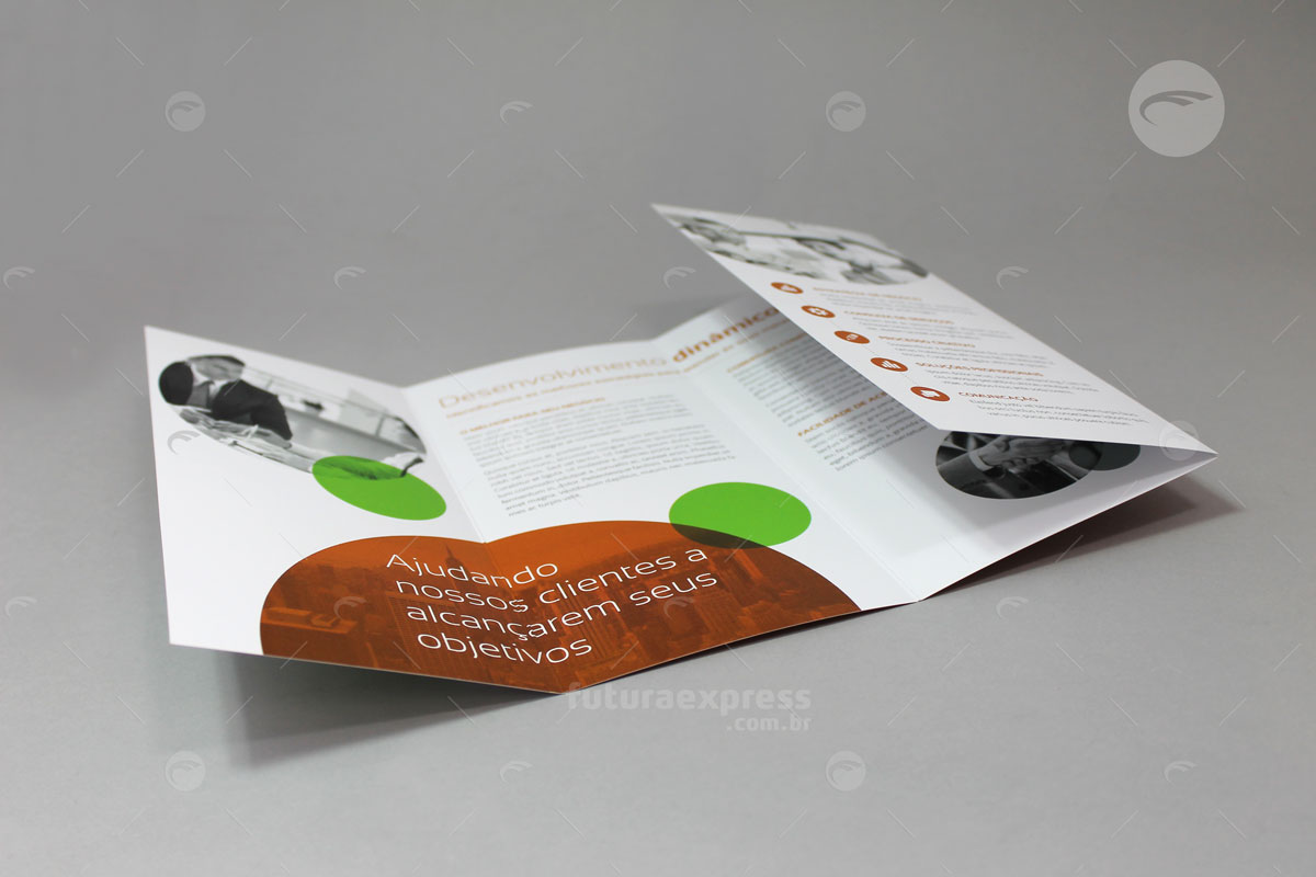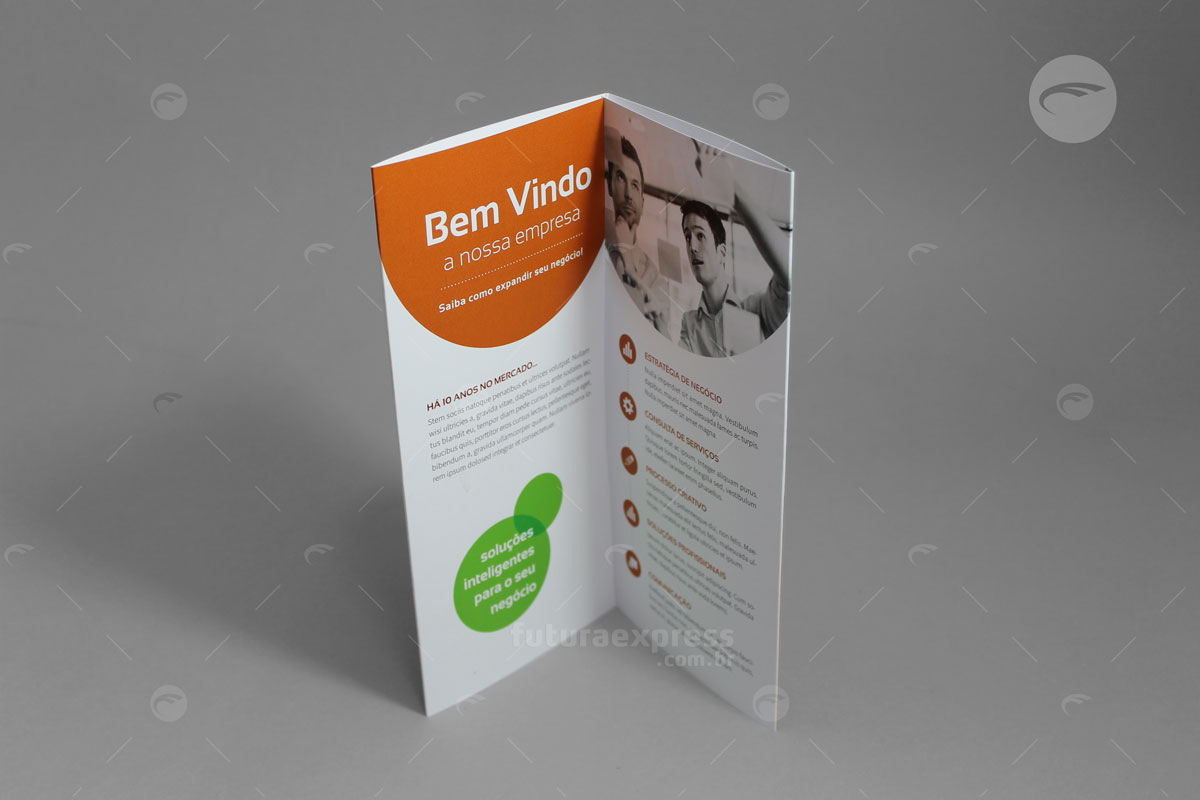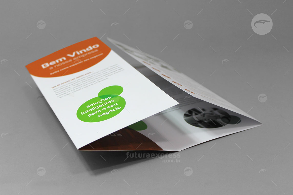 O Folder é um material publicitário impresso, que ao contrário do flyer, possui dobras e pode apresentar maior quantidade de informações. Uma boa qualidade de textos e imagens convence um público sobre determinada opinião. Tenha liberdade de escolher o melhor formato e acabamento para uma comunicação direcionada.