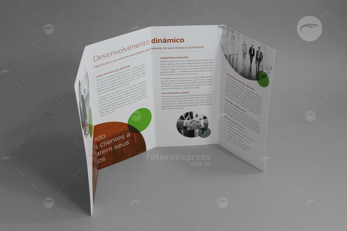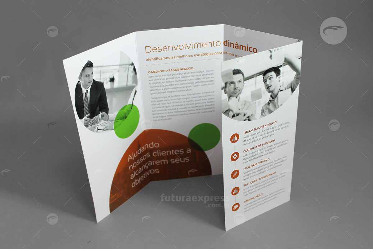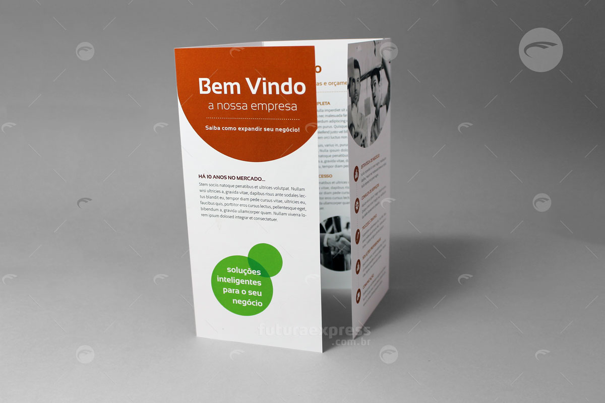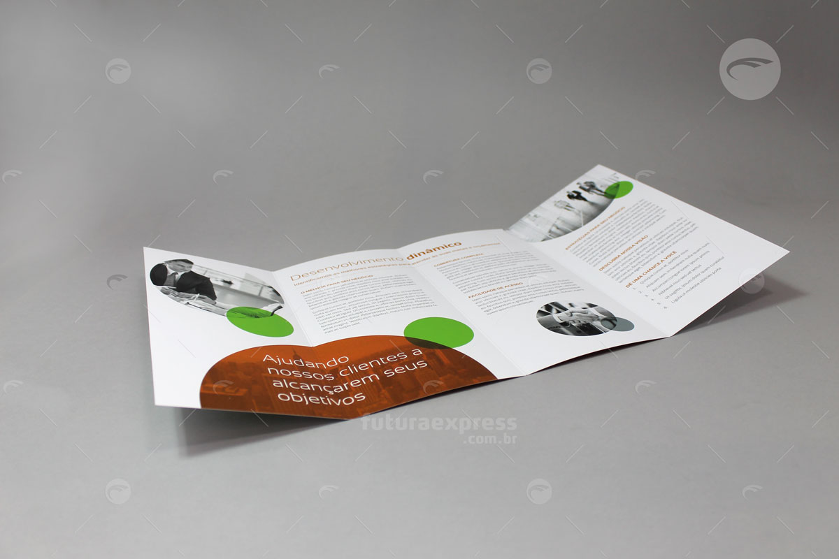 O Folder é um material publicitário impresso, que ao contrário do flyer, possui dobras e pode apresentar maior quantidade de informações. Uma boa qualidade de textos e imagens convence um público sobre determinada opinião. Tenha liberdade de escolher o melhor formato e acabamento para uma comunicação direcionada.