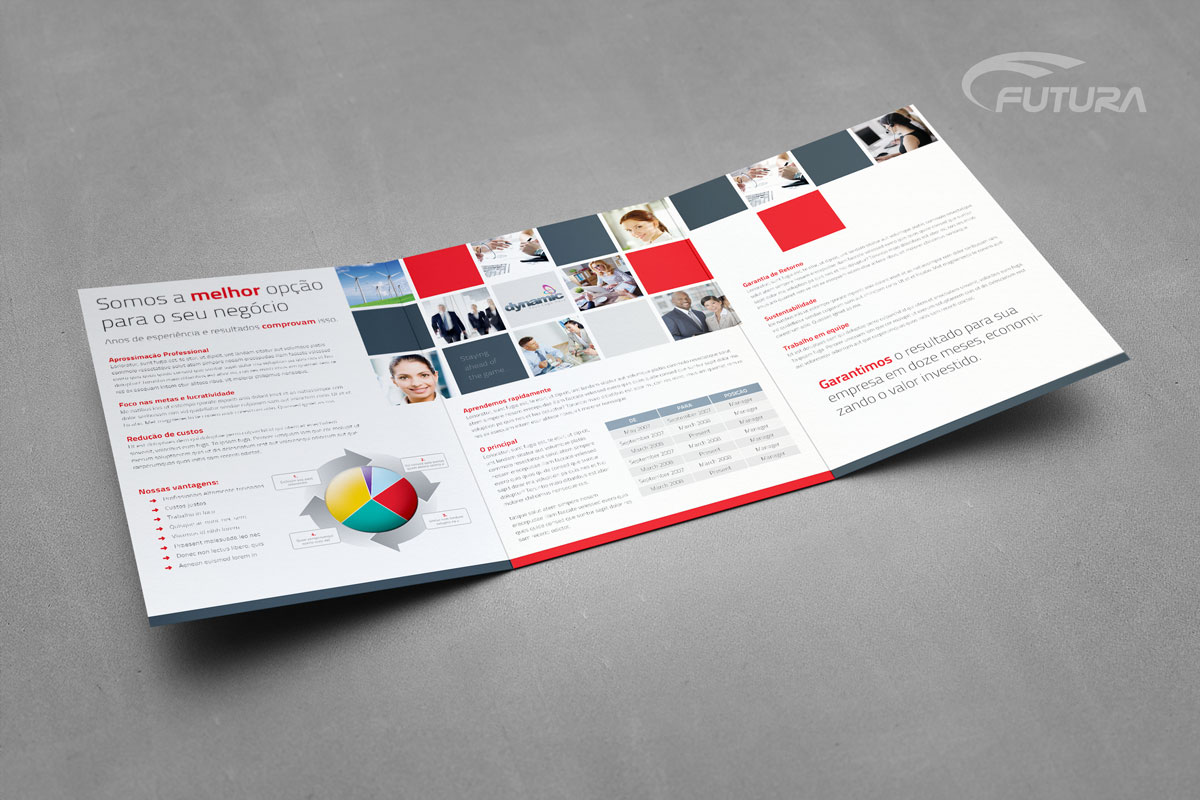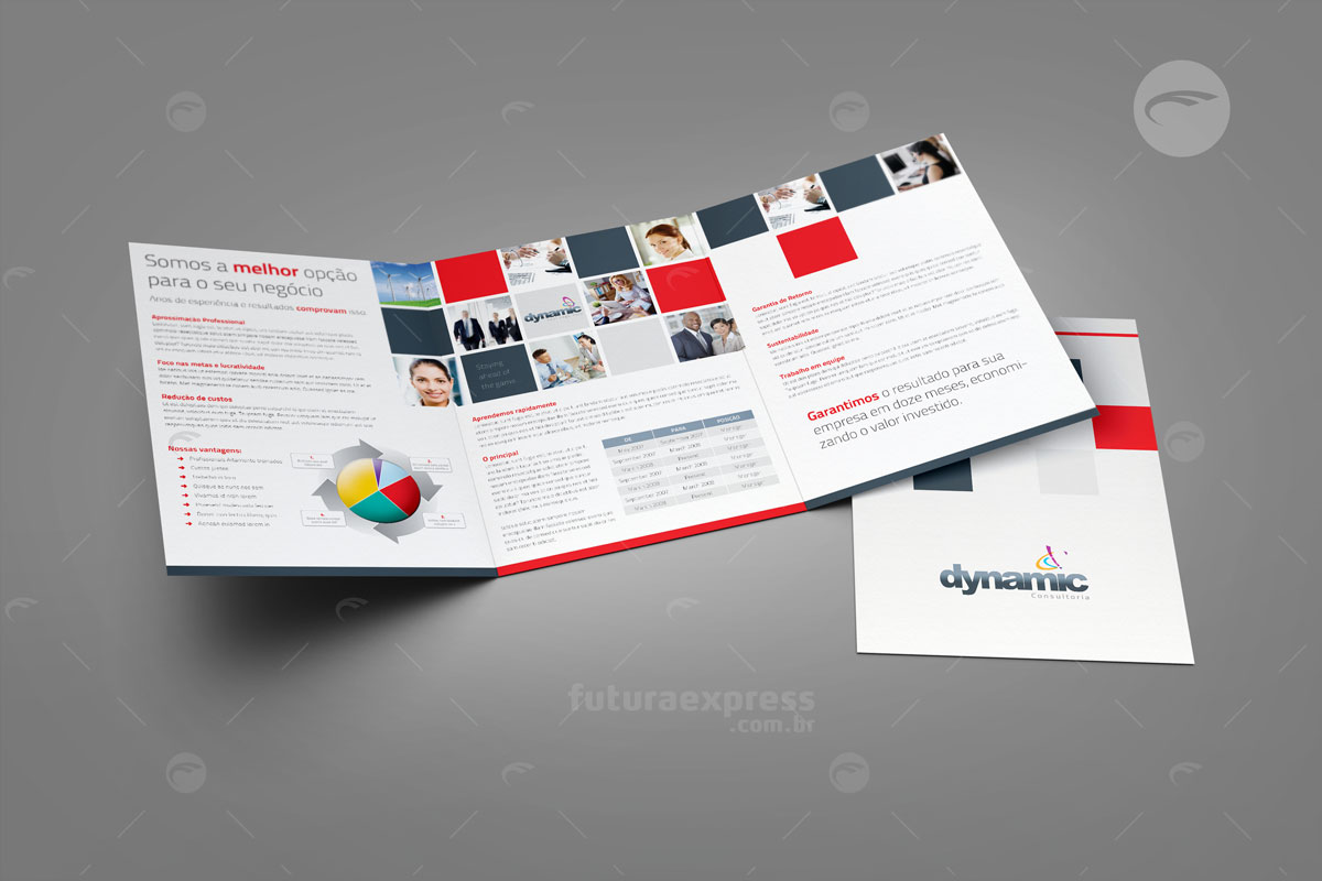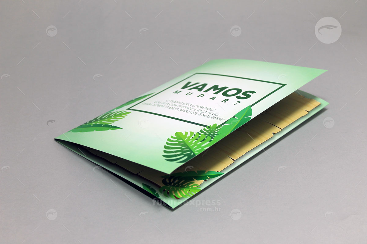 O Folder é um material publicitário impresso, que ao contrário do flyer, possui dobras e pode apresentar maior quantidade de informações. Uma boa qualidade de textos e imagens convence um público sobre determinada opinião. Tenha liberdade de escolher o melhor formato e acabamento para uma comunicação direcionada.