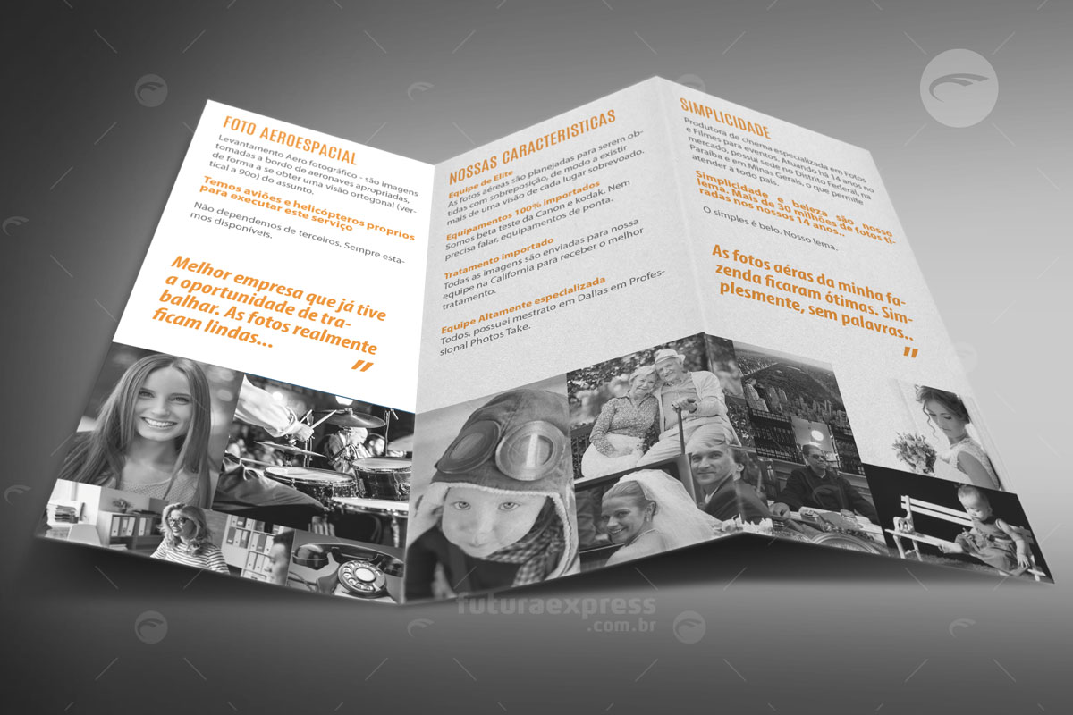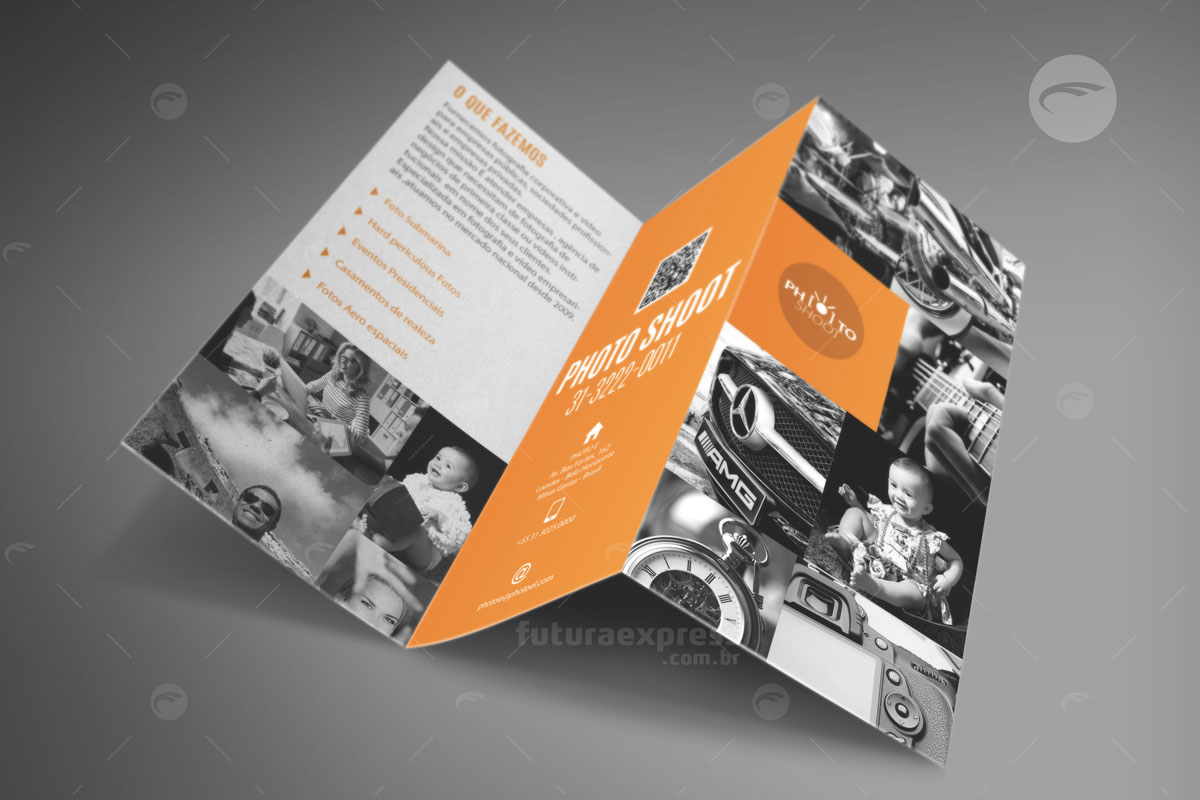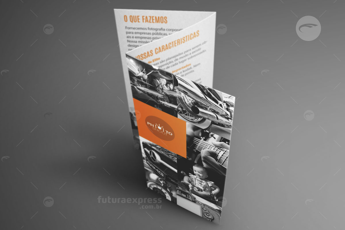 O Folder é um material publicitário impresso, que ao contrário do flyer, possui dobras e pode apresentar maior quantidade de informações. Uma boa qualidade de textos e imagens convence um público sobre determinada opinião. Tenha liberdade de escolher o melhor formato e acabamento para uma comunicação direcionada.