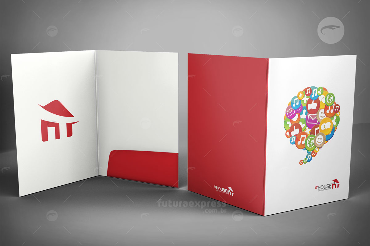 Sua pasta de apresentação precisa ser única e atraente. Normalmente será entregue ao seu cliente no primeiro contato, por isto não perca a oportunidade de impressionar diretamente através de um produto de alta qualidade.