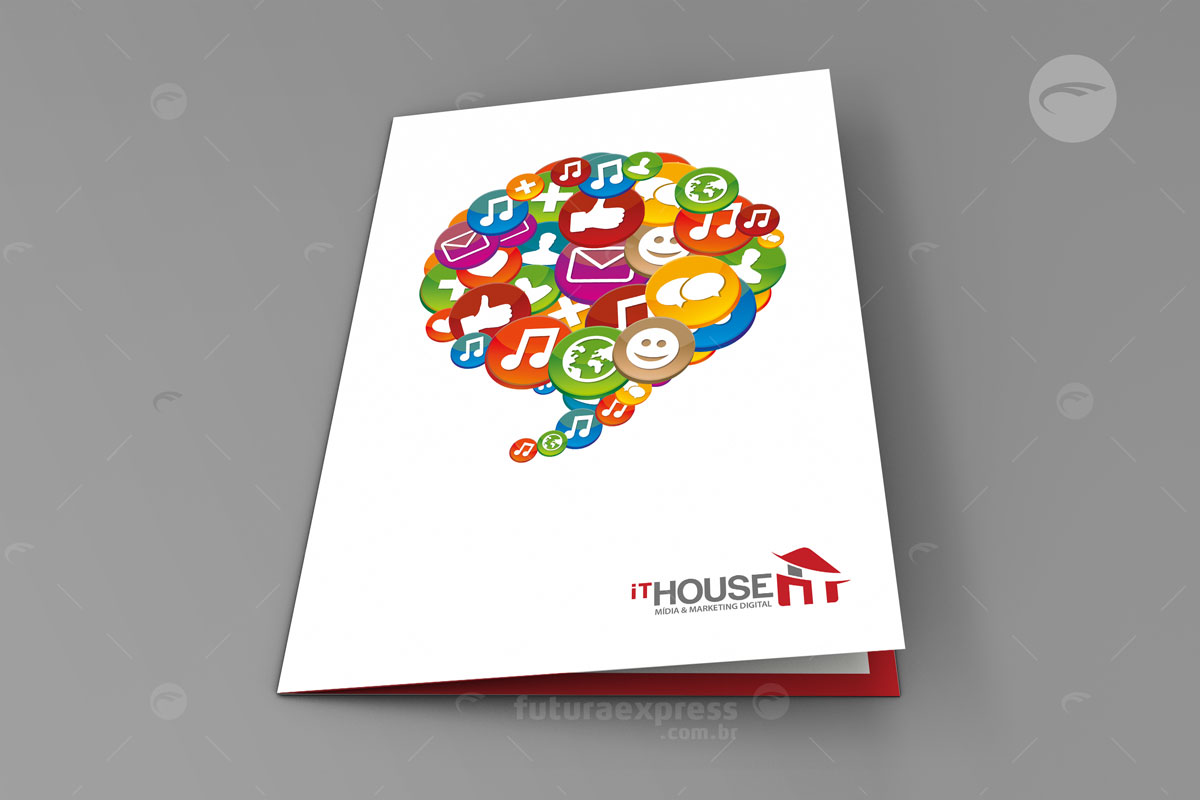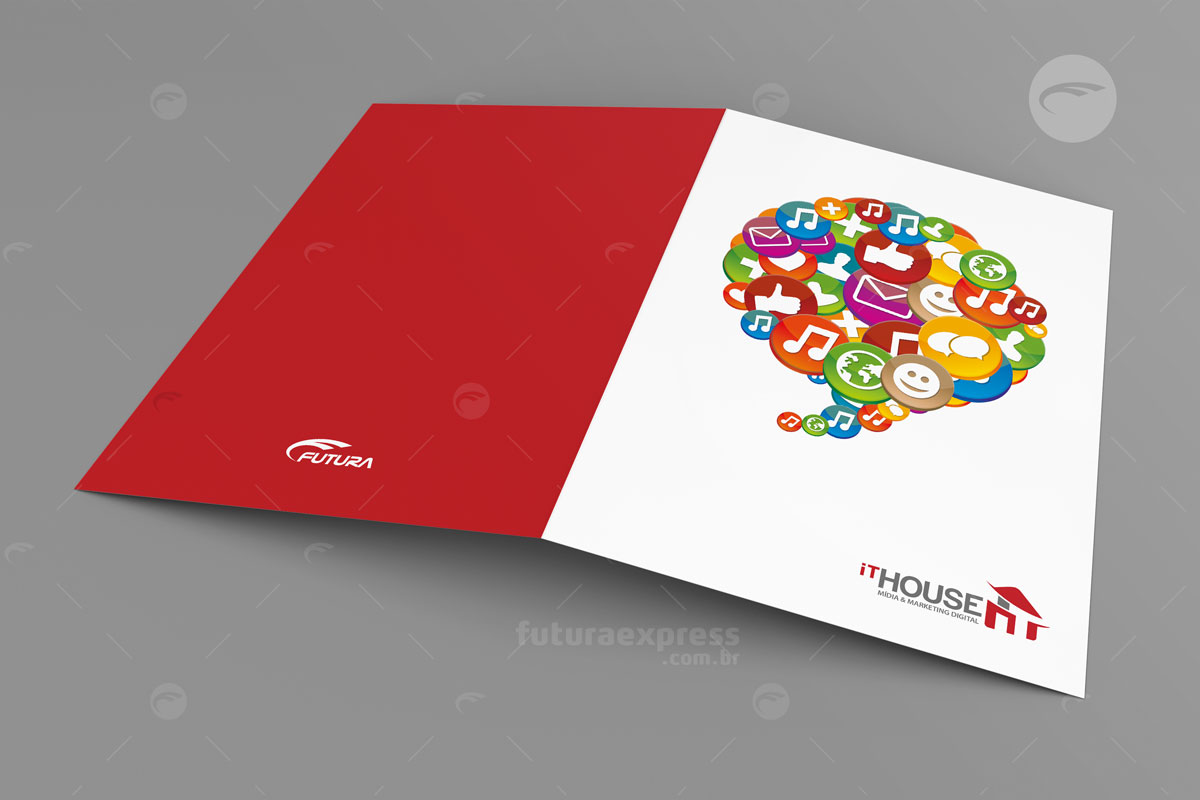 Sua pasta de apresentação precisa ser única e atraente. Normalmente será entregue ao seu cliente no primeiro contato, por isto não perca a oportunidade de impressionar diretamente através de um produto de alta qualidade.