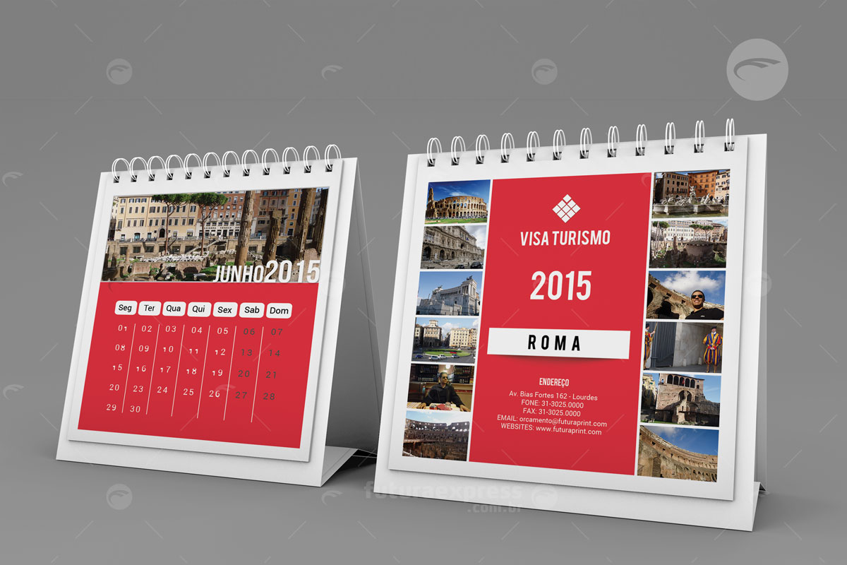 O Calendário é uma oportunidade para que seu negócio fique em evidência o ano todo. Um produto com um lay-out atrativo e de boa qualidade poderá estar presente na rotina diária do seu cliente.